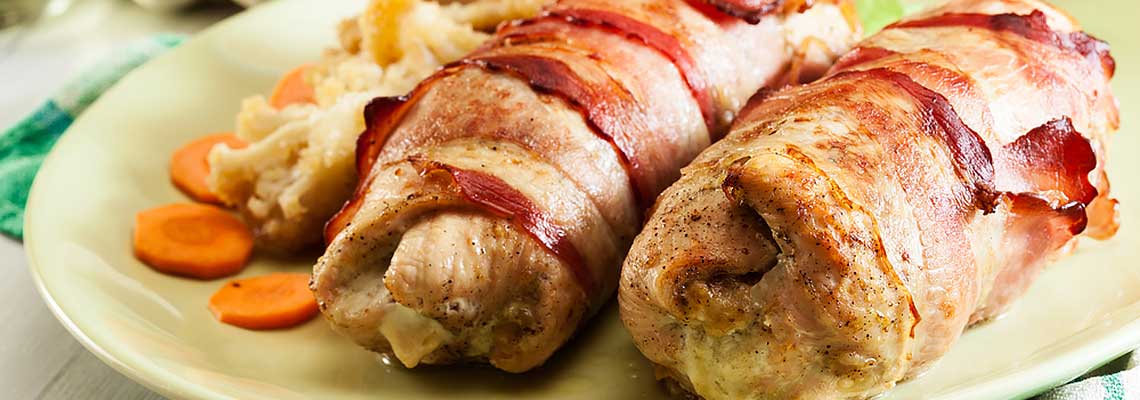 Запеченное куриное филе в беконе • Рецепт Вкусное и нежное запеченное в духовке куриное филе в беконе. Сочетание курицы и бекона очень удачное, бекон придаст мясному блюду сочность и особый аромат.