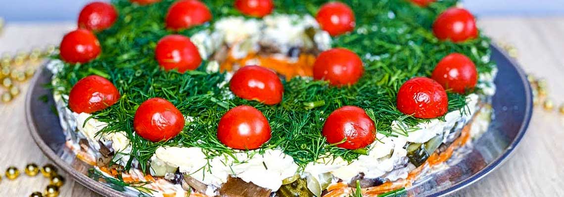Слоеный салат "Коровка" • Рецепт Праздничный слоеный салат "Коровка" с куриной печенью, шампиньонами, яйцами и овощами получается очень вкусным.