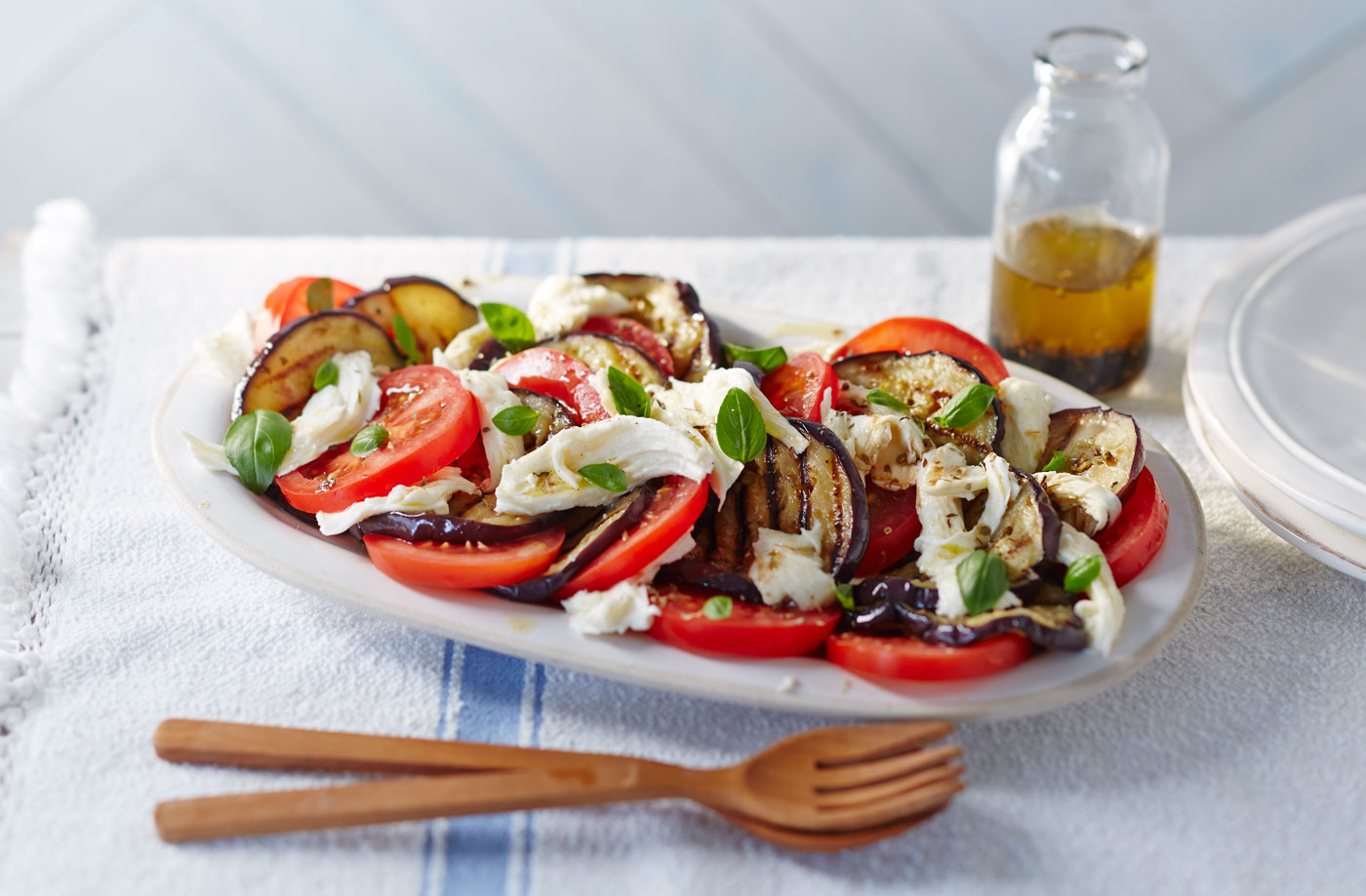 Салат из баклажан с помидорами и моцареллой Блюдо идеально подходит для пикника на природе - готовится оно всего за несколько минут.Ингредиенты:баклажан - 2 шт. оливковое масло - 3 ст. л. сыр моцарелла - 150 г помидоры - 4 шт. базилик, листья - 1 горстьдля заправки: оливковое масло - 3 ст. л. лимонный сок - 2 ч. л. бальзамический...