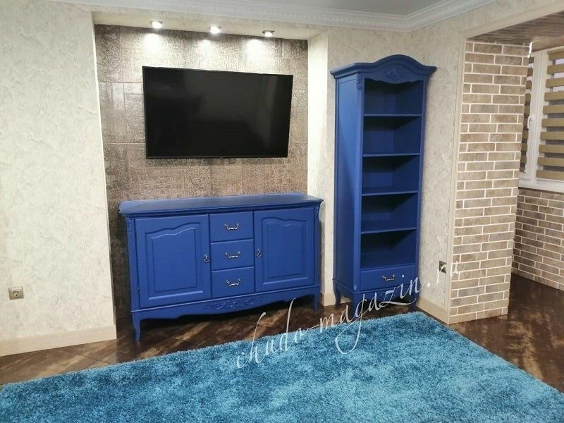 Синий комод из массива дерева дизайнерский с распашными дверцами купить по цене 66 000 руб. в Москве — интернет магазин chudo-magazin.ru