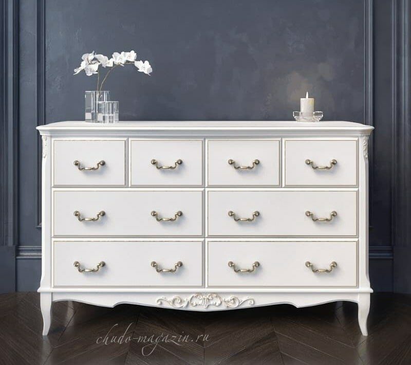 Комод широкий из массива дерева цвета слоновая кость с 8 выдвижными ящиками купить по цене 78 000 руб. в Москве — интернет магазин chudo-magazin.ru