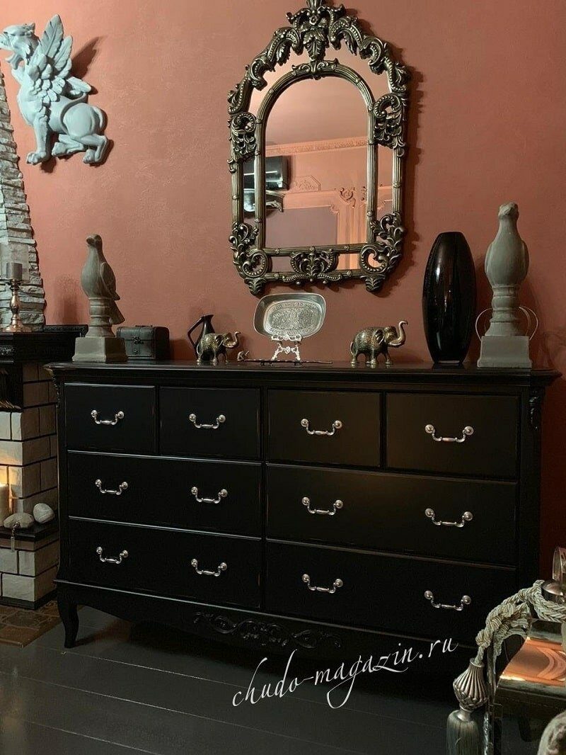 Комод из массива дерева черный большой с 8 выдвижными ящиками купить по цене 78 000 руб. в Москве — интернет магазин chudo-magazin.ru