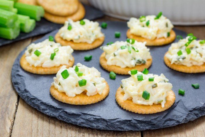 Оригинальная закуска из крекеров с салатом из сыра с сельдереем