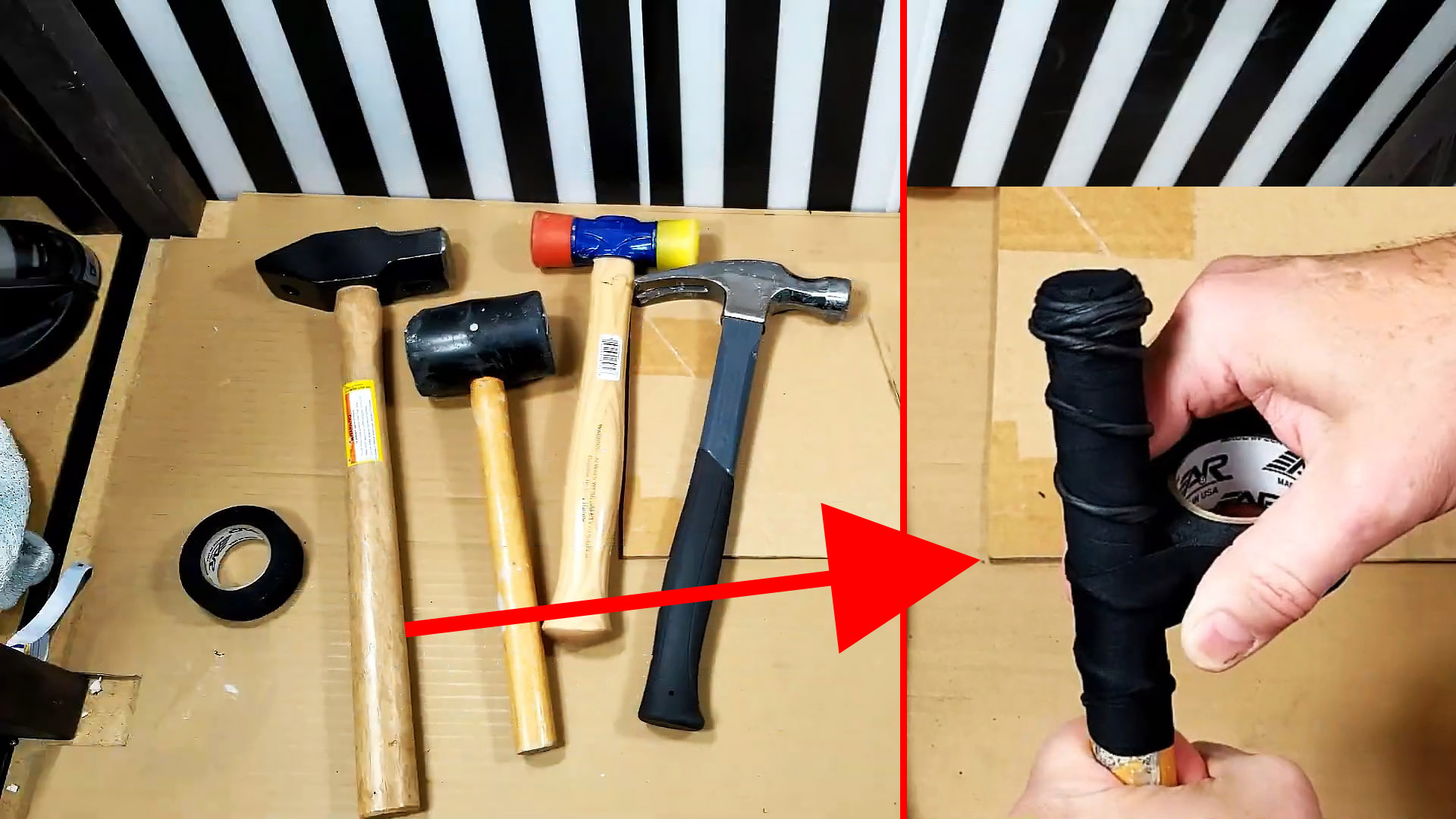 Инструмент будет держаться в руке как влитой, если сделать простую противоскользящую намотку Использовать инструмент со скользкой рукоятью небезопасно. Особенно это касается топоров и молотков. Доработать скользкую рукоять для надежного хвата совсем не сложно, достаточно просто намотать на нее изоленту хитрым способом. Что потребуется: самовулканизирующаяся или х/б изолента; нож. Процесс