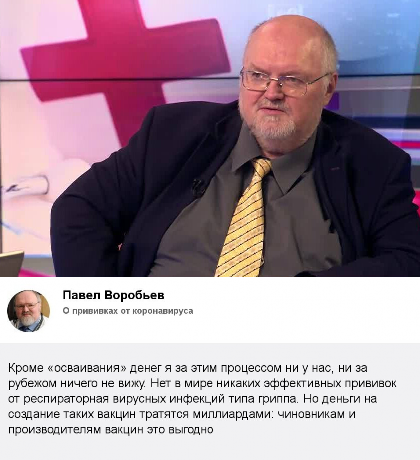 Профессор Воробьев против Спутника V Высказался известный профессор гематолог Павел А. Воробьев о российской вакцине Спутник. Кто не знает, Воробьев это довольно неоднозначная фигура в отечественной медицине. Он хороший доктор, много умного говорит, но иногда своими высказываниями перегибает палку. Профессор Воробьев Павел А. (изображение из открытых источников) Ровно год назад он совершенно серьезно вещал, что вируса вообще не существует и […] Читай дальше на сайте. Жми подробнее ➡