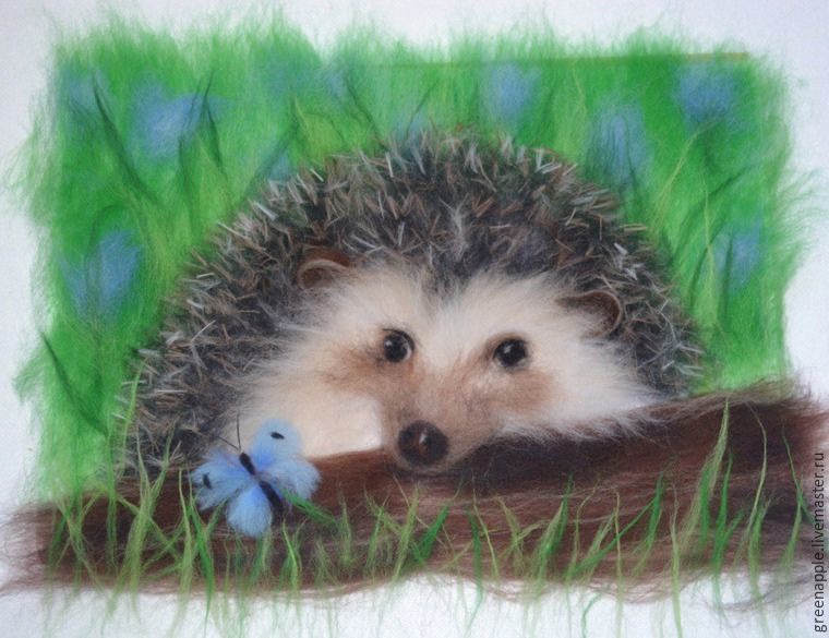 Живопись шерстью "Ёжик с мотыльком": мастер-класс Живопись шерстью "Ёжик с мотыльком": мастер-классЖивопись шерстью - это особый способ создания живописного полотна без использования кисточек, красок, карандашей или воды, методом послойного выкладывания цветной овечьей шерсти.