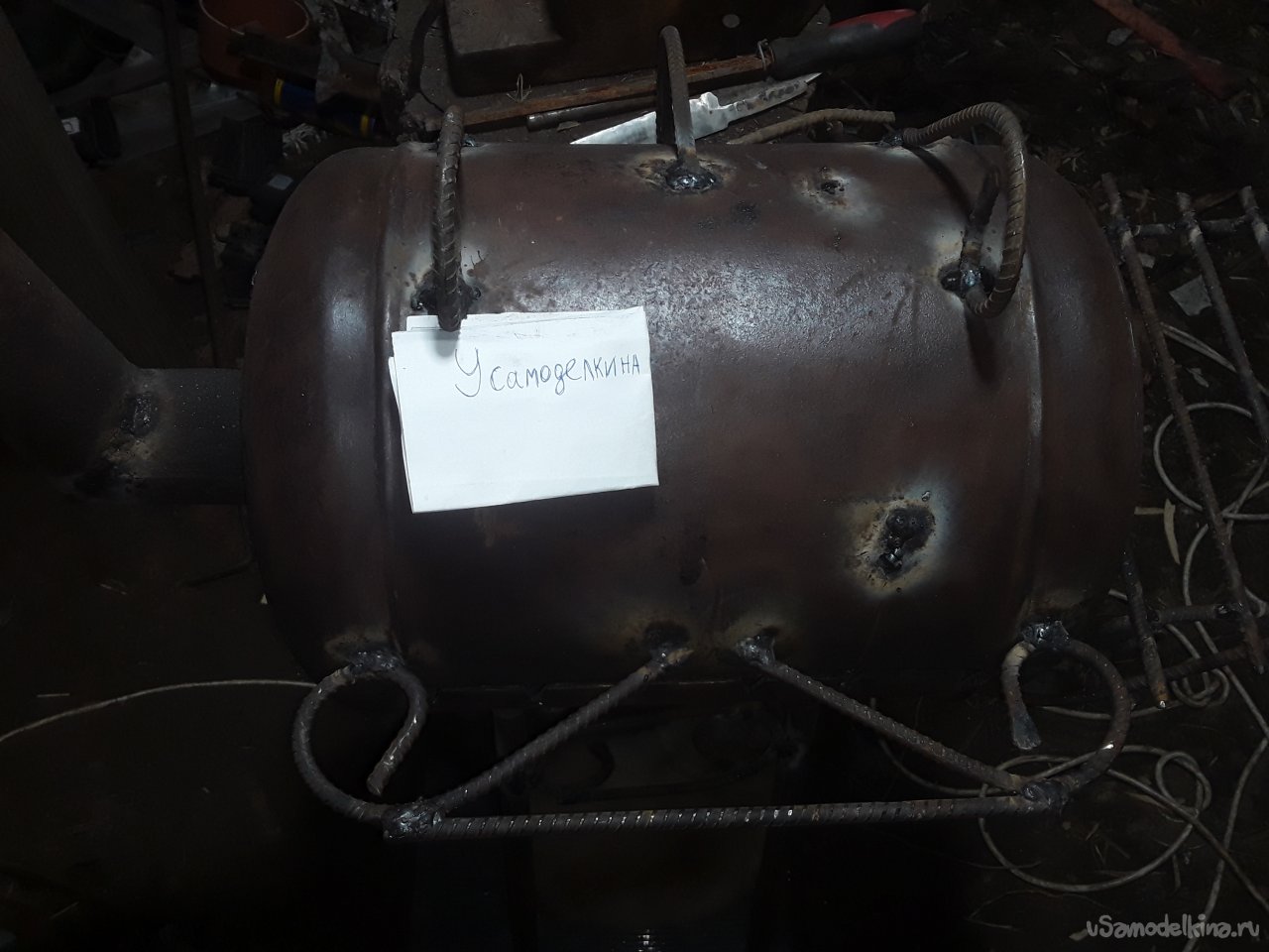 Мангал из газ баллона 27 литров Всем здравствуйте. Наступили теплые весенние деньки решил порадовать свою семью шашлычком. Пошел я в чулан искать мангал кое-как нашел, вынес на белый свет и аж стыдно стало, что у самоделкина мангал развалился. Бока прогорели, а дно съела ржавчина. Что же делать, а делать нужно новый мангал. Как
