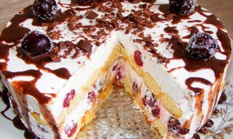Торт из печенья с вишней - скорая помощь хозяйке - На Кухне Невероятно вкусный, домашний торт из печенья с вишней, с маслянно-сметанным кремом!
