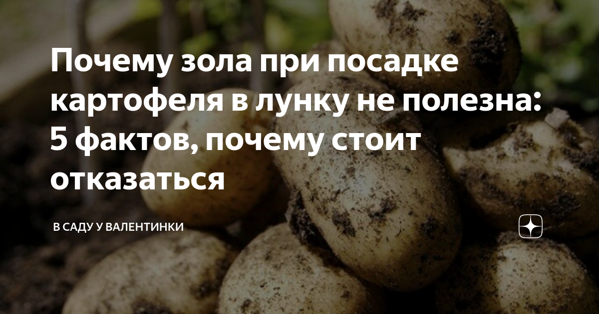 Почему зола при посадке картофеля в лунку не полезна: 5 фактов, почему стоит отказаться Зола как удобрение для картофеля: почему не полезна, в каких случаях не стоит использовать при посадке "в лунку", почему не стоит подкармливать золой. И - в каких случая зола как подкормка для картофеля нужна и полезна: факты о золе и картофеле. Факт №1. Зола - это кальций. Картофель нуждается в высоких нормах внесения калия. Кальций же - его антагонист: снижает усвояемость, становится причиной
