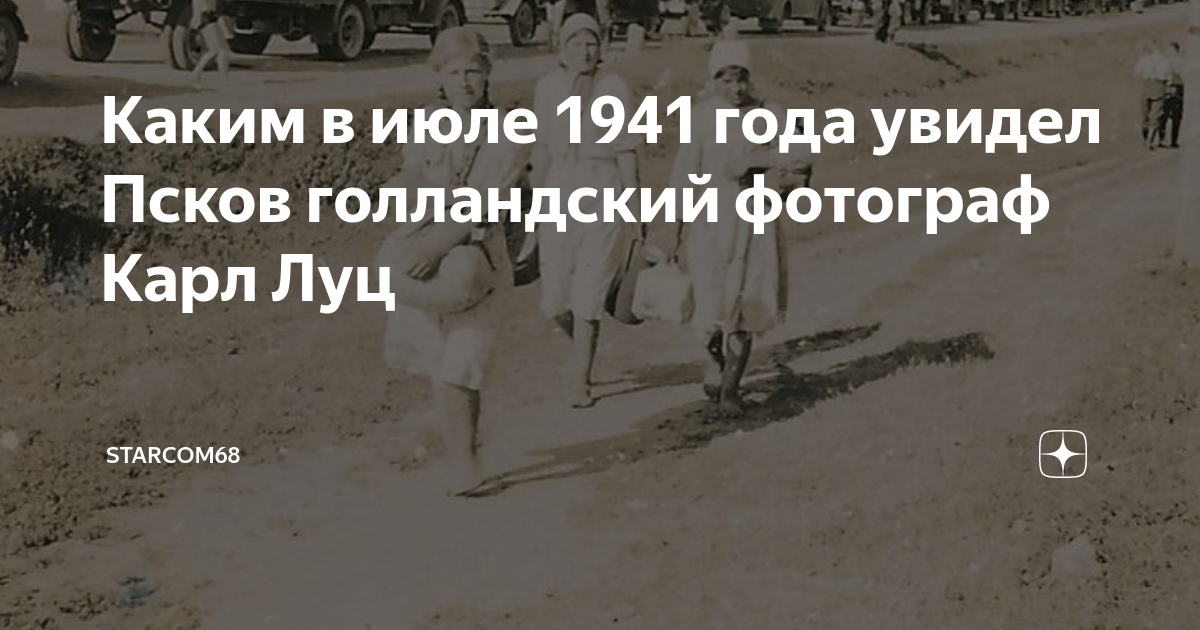 Каким в июле 1941 года увидел Псков голландский фотограф Карл Луц Продолжим знакомство с наследием голландского фотографа Hochzeit von Karl Lutz, вместе с Вермахтом вступившим в Псков в первых числах июля 1941 года. Обширное наследие фронтового фотографа за период с 1918 года по 1944 год было выложено на сайте Deutsche digitale bibliothek. Вернемся чуть назад и посмотрим фотографии, сделанные голландцем на подступах к Пскову и в районе наведенной переправы