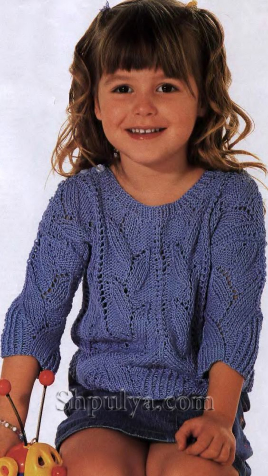 Голубой ажурный пуловер для девочки, вязаный спицами — Shpulya.com - схемы с описанием для вязания спицами и крючком