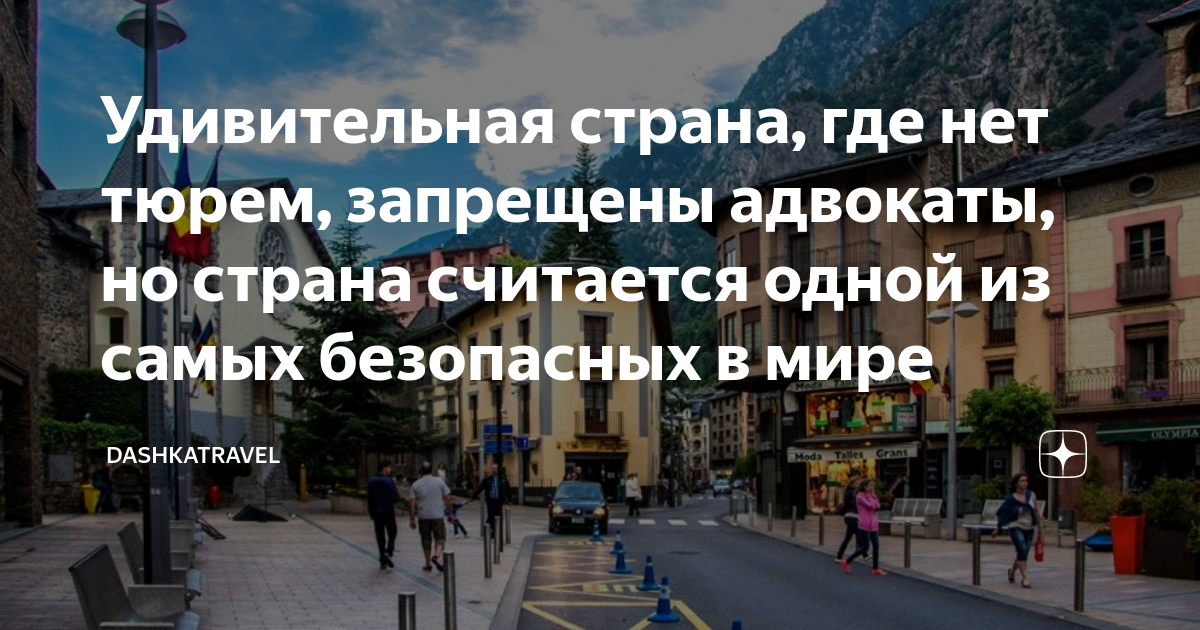 Удивительная страна, где нет тюрем, запрещены адвокаты, но страна считается одной из самых безопасных в мире Между Францией и Испанией нашло свое расположение одно из карликовых государств — всего-то 468 км2. Это именно тот случай когда размер вовсе не имеет значения — об этой стране известно множество очень удивительных фактов, а порядку царящем в ней может позавидовать любое огромное государство! Источник: Instagram Некоторое время назад эта страна и вовсе считалась закр...