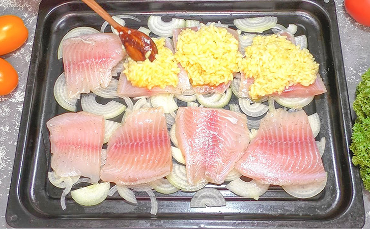 Рыба под рисом. Из скучного гарнира рис превратился в часть изысканного блюда