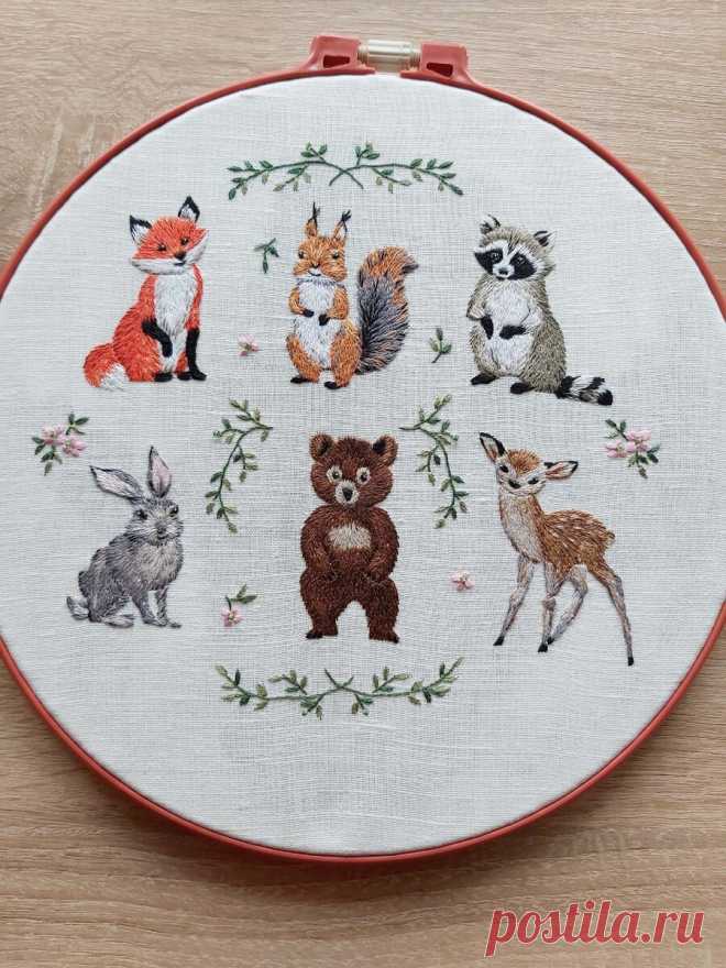 'Лесные звери', семплер из 6 вполне самостоятельных фрагментов для вышивки | ВЕРА БУРОВА, канал про вышивку | Яндекс Дзен