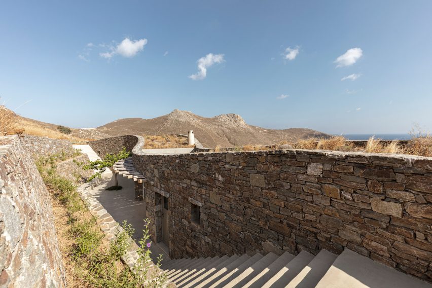 Sinas Architects designs Xerolithi vacation house with curving stone walls
