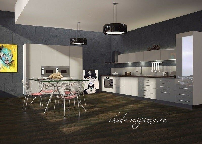 Угловая кухня МДФ глянец серого цвета купить по цене 35 000 руб. за п/м. в Москве — интернет магазин chudo-magazin.ru