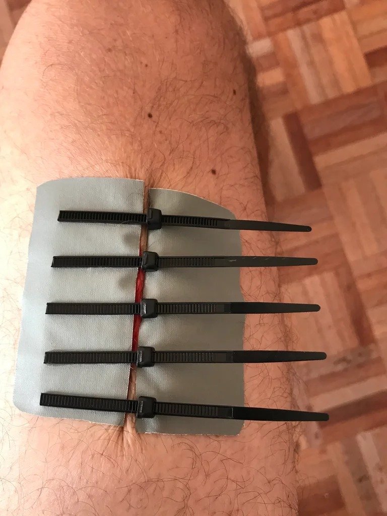 Приспособление для стяжки раны в полевых условиях Это приспособление предназначено для оказания первой медицинской помощи. Не у каждого в полевых, да и в бытовых условиях есть инструмент и умение зашить рану. Это приспособление предназначено для стягивания краев раны до доставки пострадавшего в медицинское учреждение.Не знаю если такие