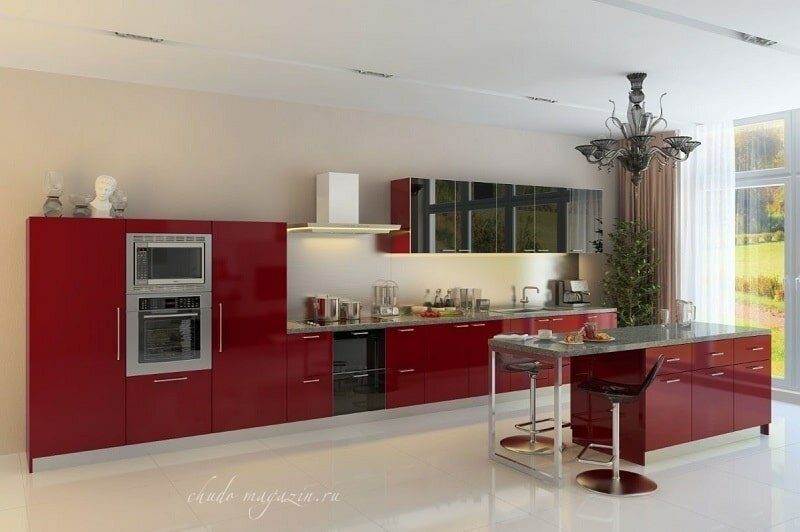 Кухня красного цвета фасады из алюминиевого профиля Шуко купить по цене 35 000 руб. за п/м. в Москве — интернет магазин chudo-magazin.ru