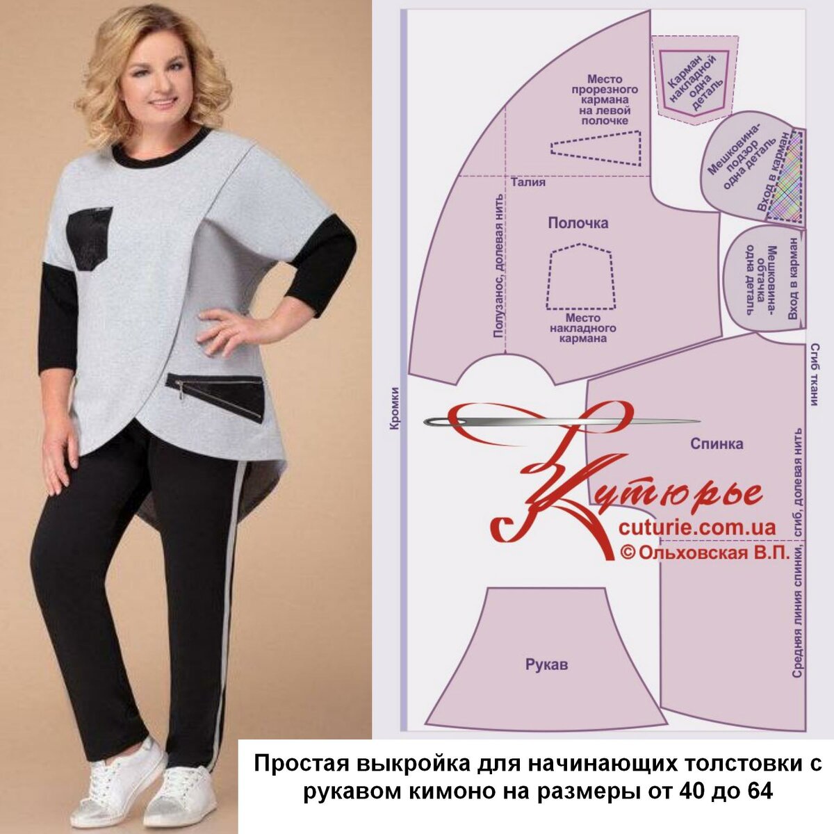 Простая выкройка для начинающих толстовки с рукавом кимоно | Шьем с Верой Ольховской | Яндекс Дзен
