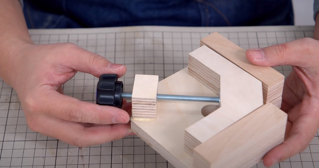 Угловая струбцина для склеивания деревянных деталей Приветствую всех любителей самоделок и тех, кто просто заглянул на сайт в поисках интересных идей. Сегодня расскажу вам, как один умелец из поднебесной смастерил простое, но довольно полезное в мастерской приспособление – угловую струбцину. Причиной послужило то, что в магазинном аналоге автор