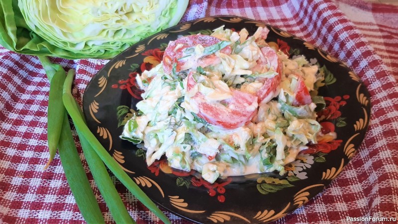 Салат из молодой капусты с помидорами и сыром Салат из молодой капусты с помидорами и сыром готовится считанные минуты! Быстрый, вкусный, освежающий, сочный, полезный весенний салатик.Ингредиенты:капуста молодая – 250 гр.;помидоры – 2 шт.;сыр твердый – 100 гр.;соль – по вкусу;сметана – 100 гр.;зелень – по вкусу.Приготовление:Капусту...