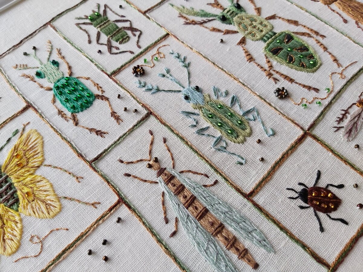 Новая работа, новый семплер - моя любимая тема - жуки, паучки, мотыльки и тд... | ВЕРА БУРОВА, канал про вышивку | Яндекс Дзен