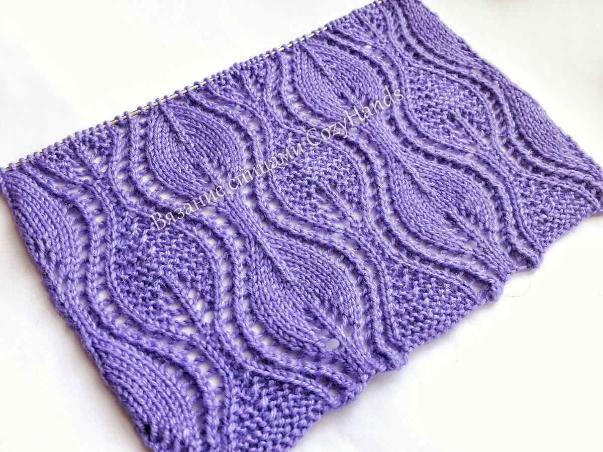 Необычный ажурный узор спицами с листьями для вязания плечевых изделий, палантинов, летней одежды | Вязание спицами CozyHands | Яндекс Дзен