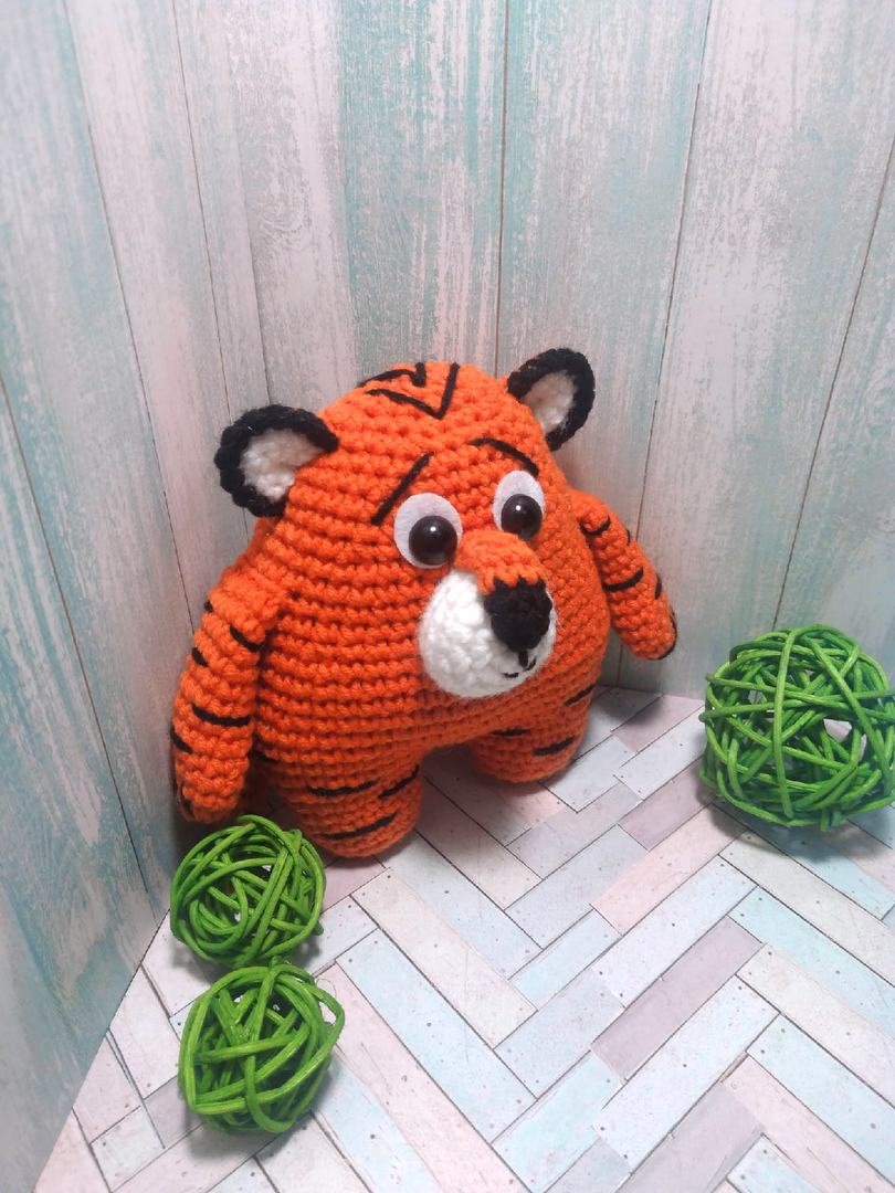 PDF Тигрёнок Толстячок крючком. FREE crochet pattern; Аmigurumi animal patterns. Амигуруми схемы и описания на русском. Вязаные игрушки и поделки своими руками #amimore - тигр, тигренок из обычной пряжи, котик, кот, кошечка, кошка, котенок.