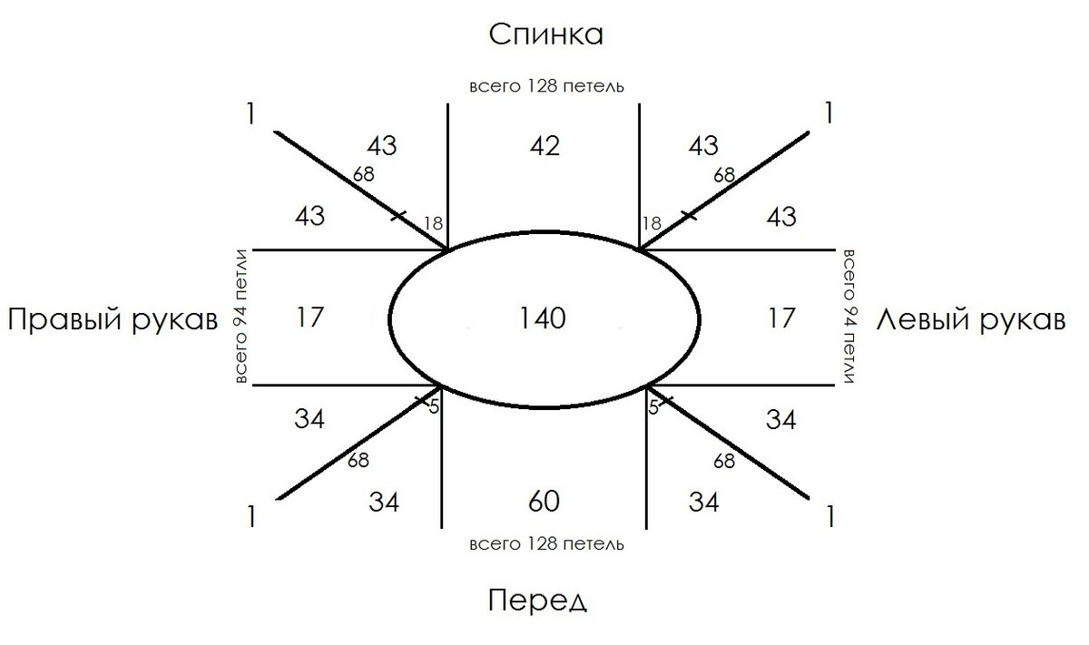 Рассчитываю реглан снизу для вязания базового летнего жакета.