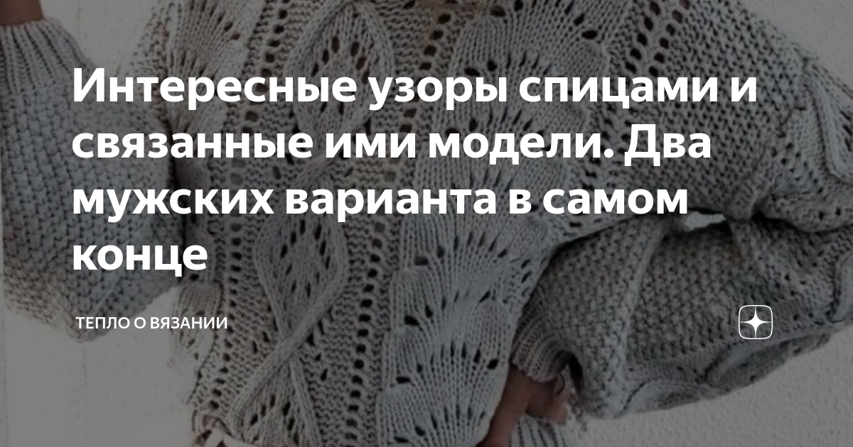 Интересные узоры спицами и связанные ими модели. Два мужских варианта в самом конце Эти рисунки здесь для того, чтобы вы в них покопались, полистали, посмотрели, как выглядят интересные узоры спицами в пуловерах (туниках, безрукавках).