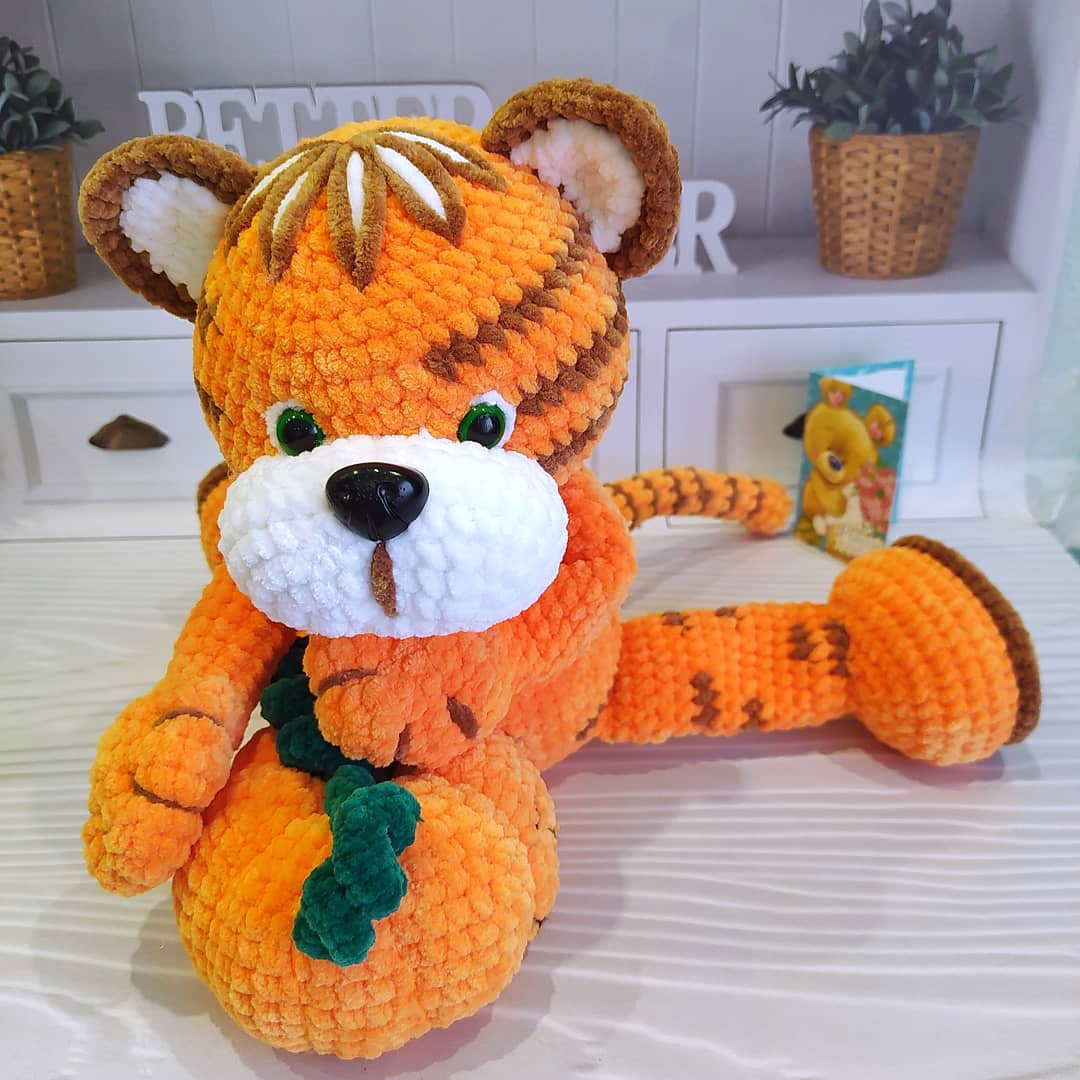 PDF Тигрёнок Тимка крючком. FREE crochet pattern; Аmigurumi animal patterns. Амигуруми схемы и описания на русском. Вязаные игрушки и поделки своими руками #amimore - плюшевый тигр, большой тигренок из плюшевой пряжи, котик, кот, кошечка, кошка, котенок.