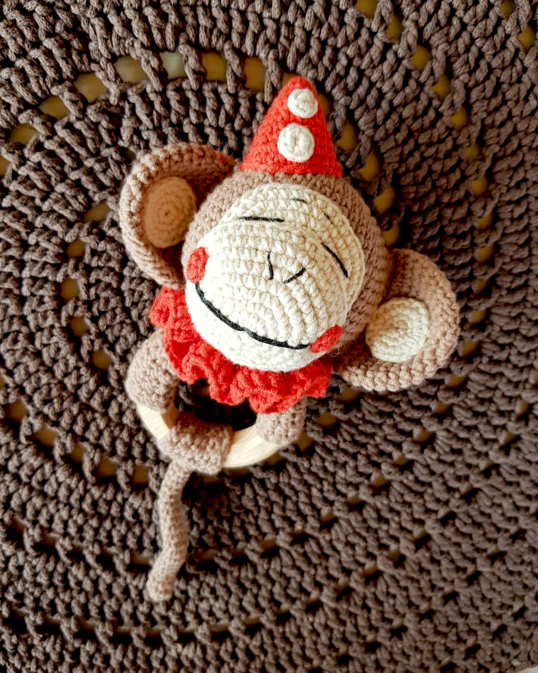 PDF Цирковая Обезьянка крючком. FREE crochet pattern; Аmigurumi animal patterns. Амигуруми схемы и описания на русском. Вязаные игрушки и поделки своими руками #amimore - обезьянка, обезьяна, мартышка, погремушка, грызунок.