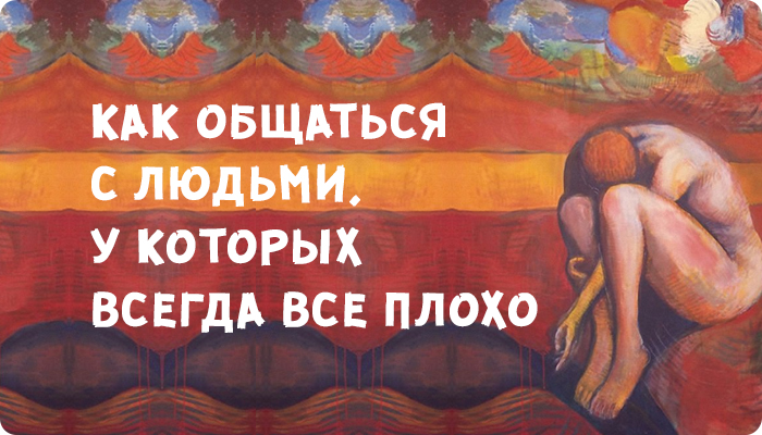 Как общаться с людьми, у которых всегда все плохо Жизненные трудности должны человека делать сильнее, закалять. Так сообщают многие религии и идеологии. Считается, что человек получает определенные проблемы для того, чтобы развиваться и становиться лучше. Но есть таки люди, которые зацикливаются на своих переживаниях: они все время недовольны, несчастны и печальны, у них в жизни все плохо, а даже если хорошо — то это […] Читай дальше на сайте. Жми подробнее ➡