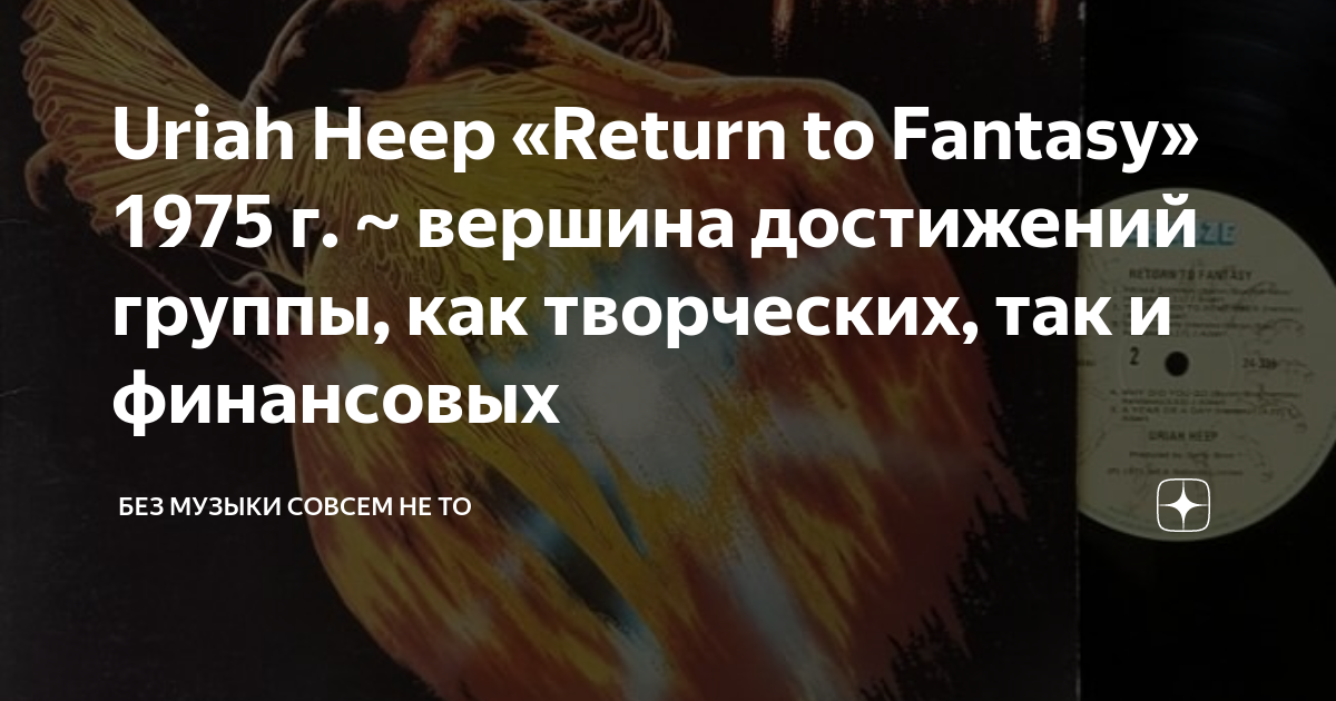 Uriah Heep «Return to Fantasy» 1975 г. ~ вершина достижений группы, как творческих, так и финансовых Когда в 1975 году вышел альбом Uriah Heep «Return to Fantasy», он сразу же взлетел в британских чартах, но сильно просел в американских. Тем не менее, пластинка считается самым успешным произведением группы, как до, так и после ее выхода, причем как в творческом плане, так и в финансовом Альбом Uriah Heep "Return to Fantasy", 1975 г. Альбом Uriah Heep «Return to Fantasy» мне понравился сразу, как