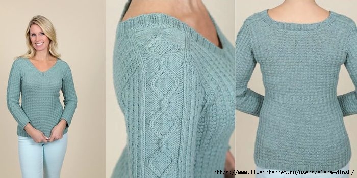 Вязаный спицами женский джемпер с косами на рукавах Cordage.Дизайнер: Kristen TenDyke.