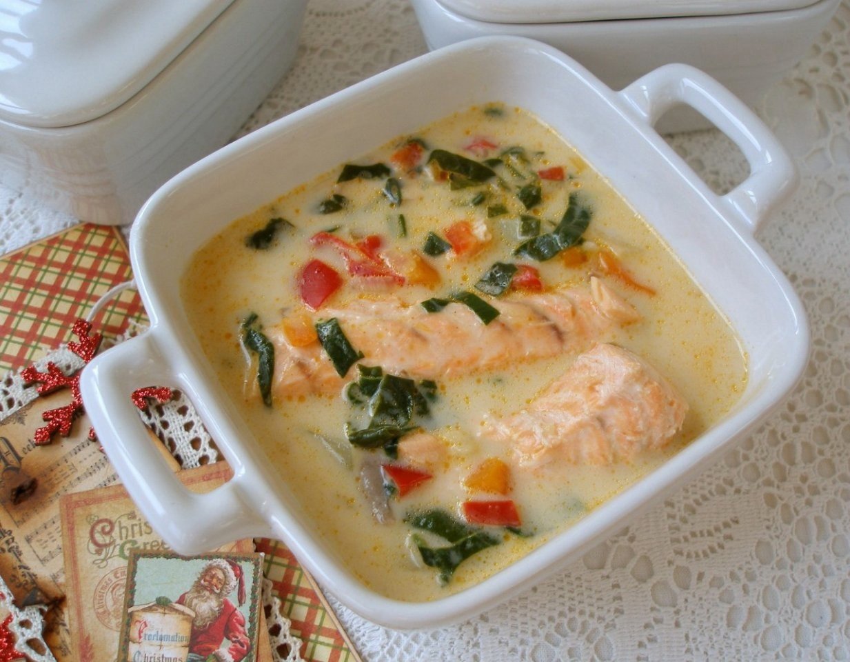 Ингредиенты:Лосось — 500 г Лук — 1 шт. Морковь — 1 шт. Сладкий болгарский перец — 1 шт. Шпинат — 1 пучок Плавленый сливочный сыр — 200 г Картофель — 2...