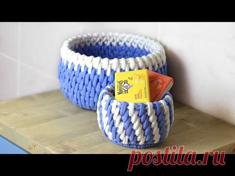 Корзинка узором "Ротанг" из трикотажной пряжи
