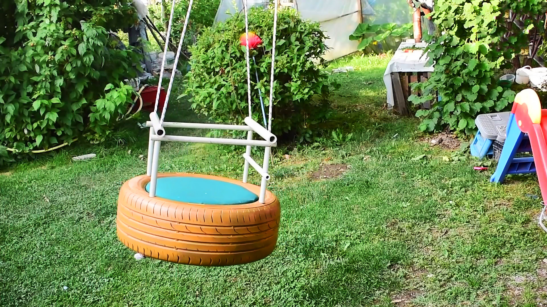 Как из старой автошины сделать уличные качели и порадовать детишек Дети обожают качели, но качественно выполненные стоят недешево. Как порадовать ребятишек и при этом не слишком потратиться? Очень просто: достаточно найти в гараже или взять в ближайшей СТО старую шину от легковушки! Понадобится Старая шина; щит ДСП (МДФ) от старой мебели; тонкий поролон и плотная