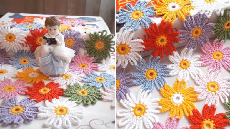 Цветочная поляна из остатков пряжи / Я - суперпупер