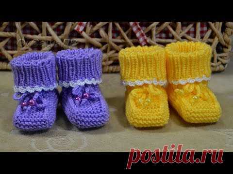 Пинетки спицами (от 0 до 1года). Простая модель. Knitting Baby booties