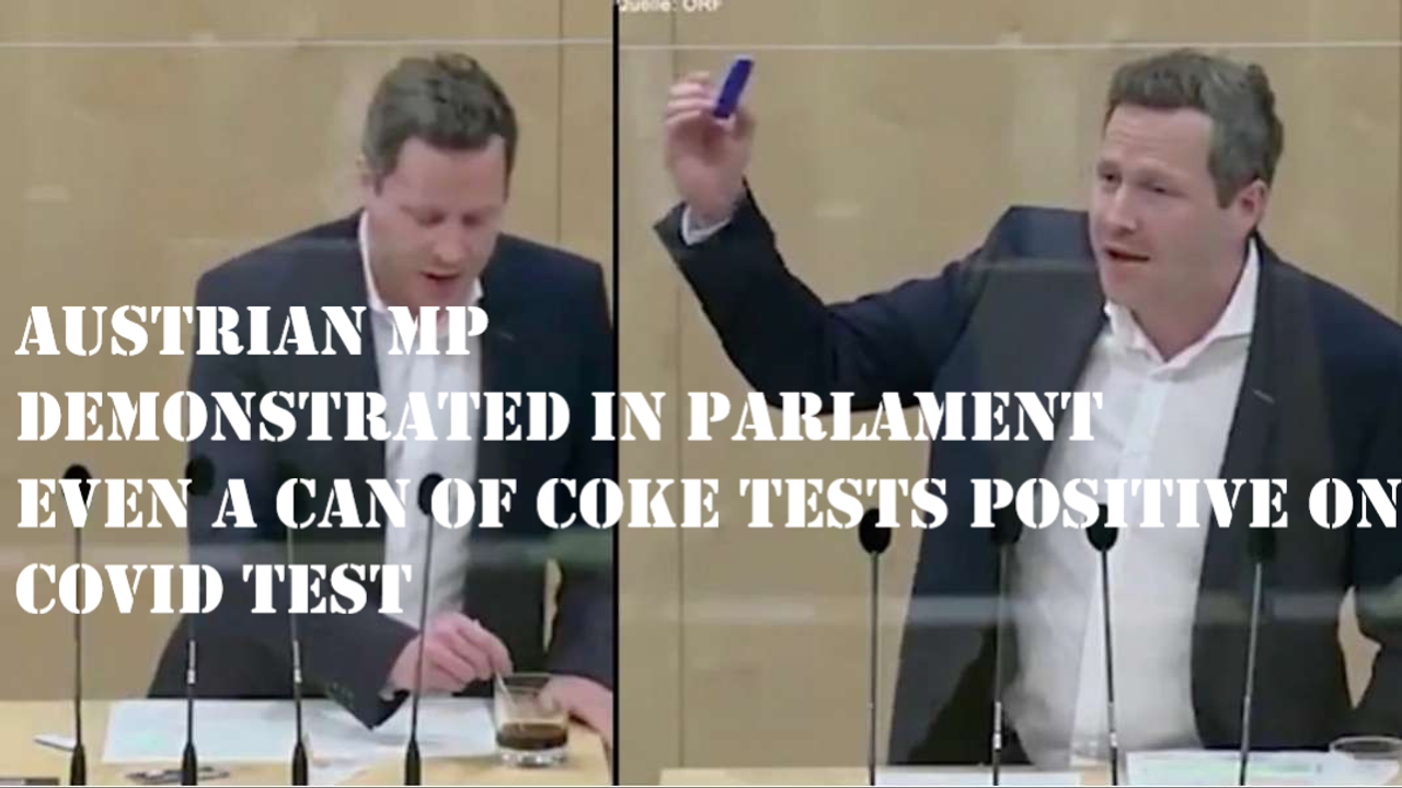 Austrian MP Demonstrated In Parlament Even A Can Of Coke Tests Positive On Covid Test English subtitles are auto-generated, so are probably a somewhat clumsy translation. Sincere apologies to all the German-speakers out there. 😂 An Austrian parliamentary member demonstrated the defectiveness of the government’s Covid-19 tests by showing how a glass of coke yields a positive result. In footage from the meeting in Vienna Friday, FPO General Secretary Michael Schnedlitz br...
