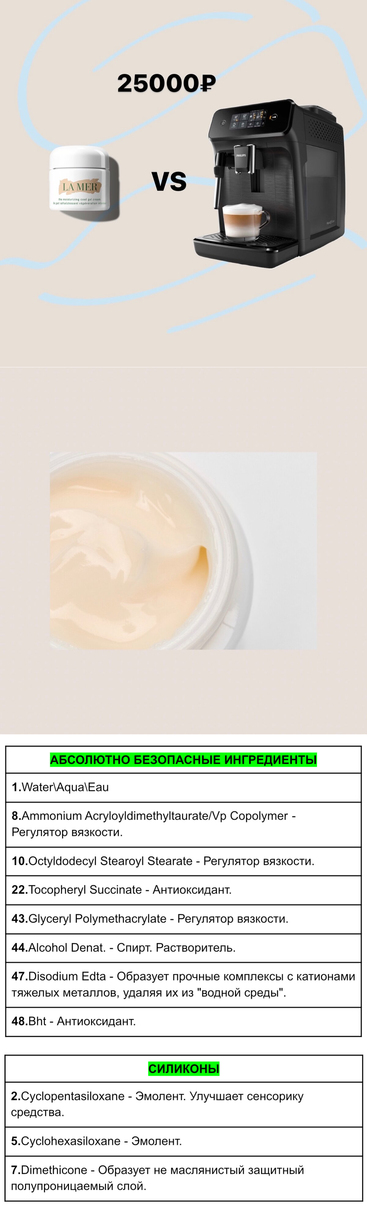 Увлажняющий крем-гель для лица по цене кофемашины. Взгляд химика на состав За что такие деньги? Будет ли этот крем варить вам кофе по утрам, еще и приносить его в постель? Бренд La Mer не перестает будоражить чувства многих в интернете. Почему бренд просит небывалые суммые за свои средства? Что в них особенного? Сегодня подробно рассмотрим состав и попробуем разобраться в этом. The Moisturizing Cool Gel Cream […] Читай дальше на сайте. Жми подробнее ➡