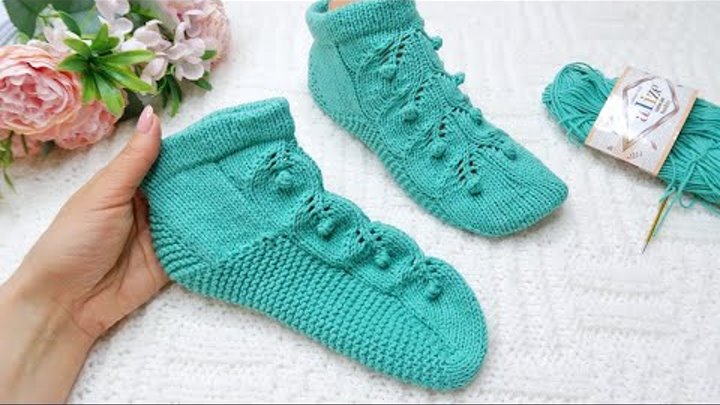 Летнии следки спицами с пяткой стронг Легко и просто Свяжет даже начинающая вязальщица