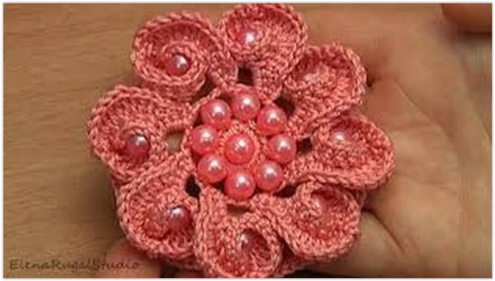 Вяжем супер завитки крючком в цветке с бусинами - мастер-класс по вязанию