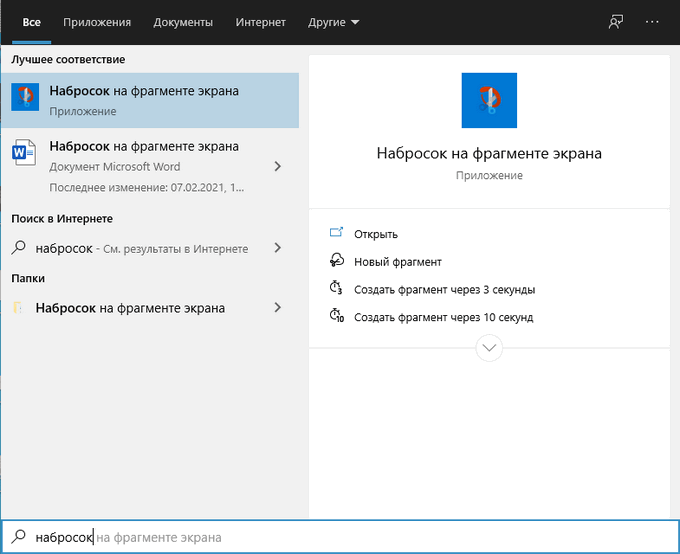 «Набросок на фрагменте экрана» для создания скриншотов.
