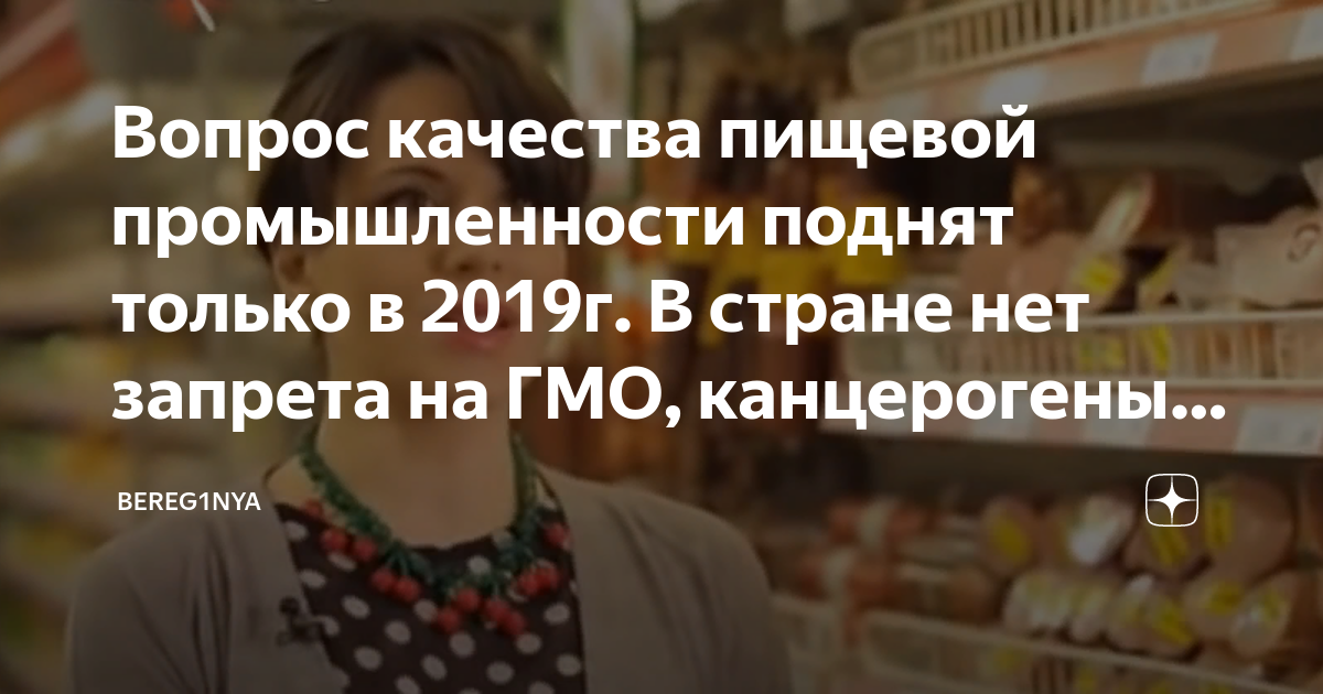 Вопрос качества пищевой промышленности поднят только в 2019г. В стране нет запрета на ГМО, канцерогены и химикаты в продуктах В нашей стране нет запрета на продажу токсичных, канцерогенных или генно-модифицированных продуктов! Как завозились, так и завозятся, пока в России лишь установлена норма их содержания в продуктах. Никаких ограничений на распространение даже 100% генно-модифицированной продукции нет. Приветствую всех на моем канале. Читайте, обсуждайте, делитесь сво...