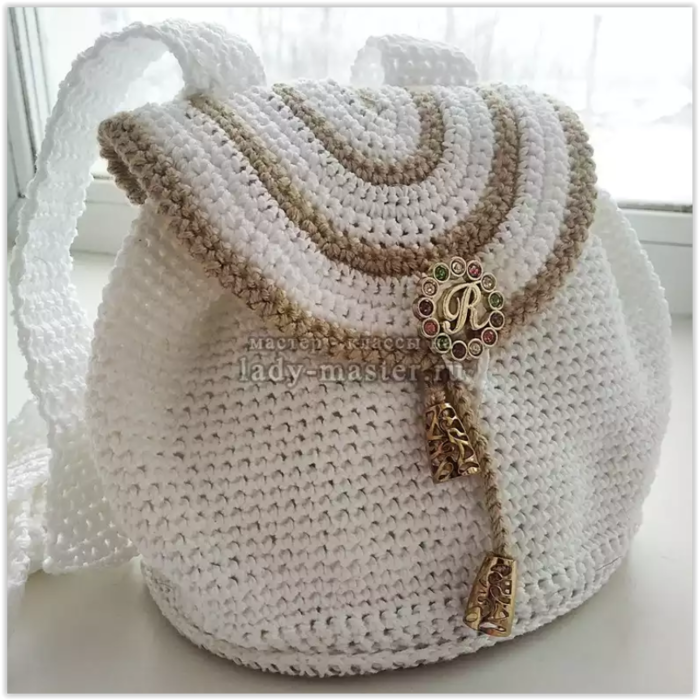 Модный женский рюкзак цвета "кофе с молоком" крючком