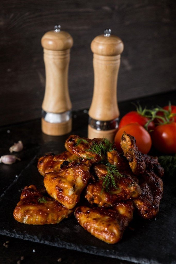 Куриные крылышки в томатном соусе Калорийность на 100 г — 169 ккал Ингредиенты: Куриные крылья — 500 г Для маринада: Протертые томаты — 160 г Оливковое масло — 2 ст. л. Чеснок (измельченный) — 3 зубчика Соль, черный перец, сушеный базилик — по вкусу Приготовление: 1. Смешайте все компоненты для маринада. 2. Замаринуйте крылышки (60-180 минут). 3. Запекайте 35-40 минут (190 °C). Приятного аппетита! #горячее@bon