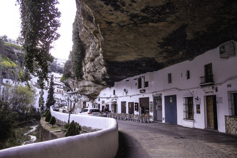 ОГРОМНЫЕ СКАЛЫ, НАВИСАЮЩИЕ НАД УЛИЦАМИ Базальтовые скалы на улицах "Сетениль-де-лас-Бодегас". Испания ⠀ Лежащий в горах Андалусии Сетениль-де-лас-Бодегас являет собой удивительный архитектурный ландшафт: многотонные скальные своды, нависающие над улицами и переулками городка, защищают его от пронизывающих ветров и палящего зноя. Дома, будто бы врезанные в базальтовые скалы, являются продолжением природных каменных пещер.