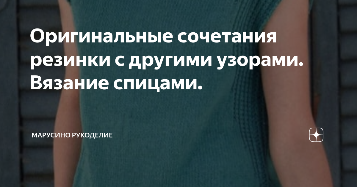 Оригинальные сочетания резинки с другими узорами. Вязание спицами. Обычно, узор "Резинка" применяется для вязания манжет и оформления низа переда и спинки. Не в диковинку и изделия, полностью связанные какой - то резинкой. Предлагаю посмотреть модели, в которых резинка вяжется в неожиданных местах и в интересном сочетании с другими узорами. Такие дизайнерские решения делают изделия стильными и оригинальными. 1. Патентная резинка + лицевая гладь. - Резинка вяжется по...